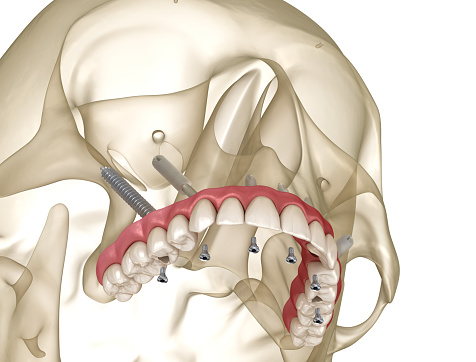 Las raíces de los dientes naturales están fijadas dentro de sus alveolos en el hueso maxilar. De manera similar los implantes dentales convencionales están anclados a ese mismo hueso en las mismas o parecidas posiciones que las raíces a las que sustituyen. En el caso de alguien con pérdida de hueso importante en el maxilar superior, puede ser que no cuente con suficiente hueso disponible para la colocación de un implante dental convencional, con la consecuente pérdida en la calidad de vida que esto puede suponer de no optar por alguna alternativa.